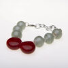 Perle in vetro soffiato, filo d’acciaio rivestito in pvc e minuterie in acciaio rodiato